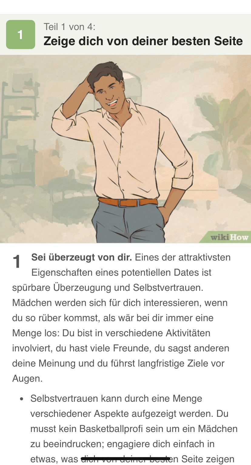 *versucht auf Wikihow einen Artikel über dating zu finden, den er jetzt völlig falsch befolgen kann*