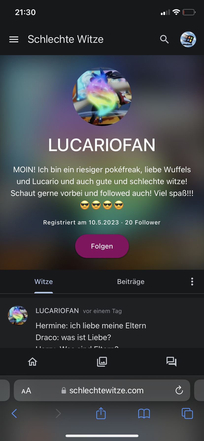 Aber ich folge nur auf zwei Accounts Lucariofan!Aus dem Grund weil ich es sonst sehr unfair finden würde.Aber ich kann meine anderen Profile ja gar nd mehr steuern die sind ja durch ein Unfall sozusagen passiert und deswegen kann ich nur noch auf diesem wo ich jetzt schreibe irgendwas machen .Und ich glaube nicht das er sie faket weil 1.wie soll das gehen?,2.Er ist sehr nett und cool und nicht jeden Tag on und dann folgen ihm bestimmt viele .Das war jetzt meine Meinung dazu ….