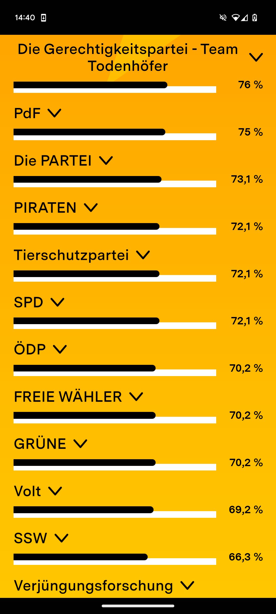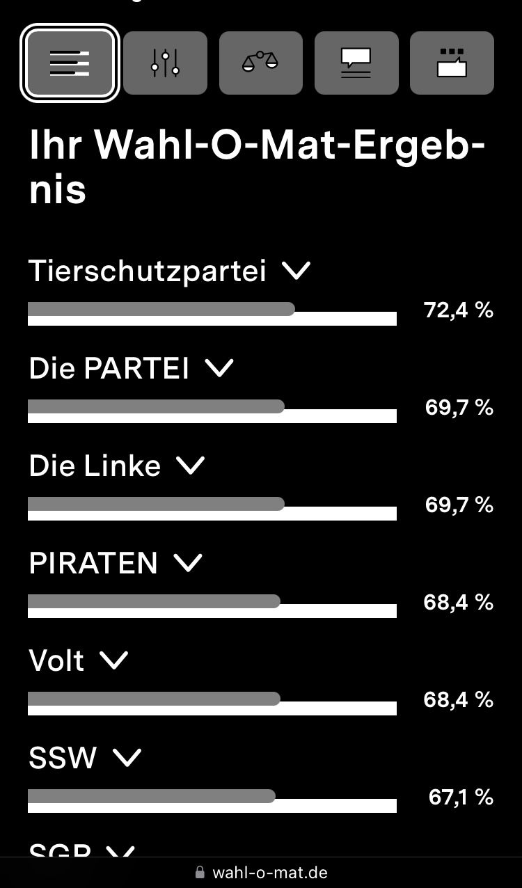 Bei mir beim wahl-o-mat waren Volt und linke ganz oben
