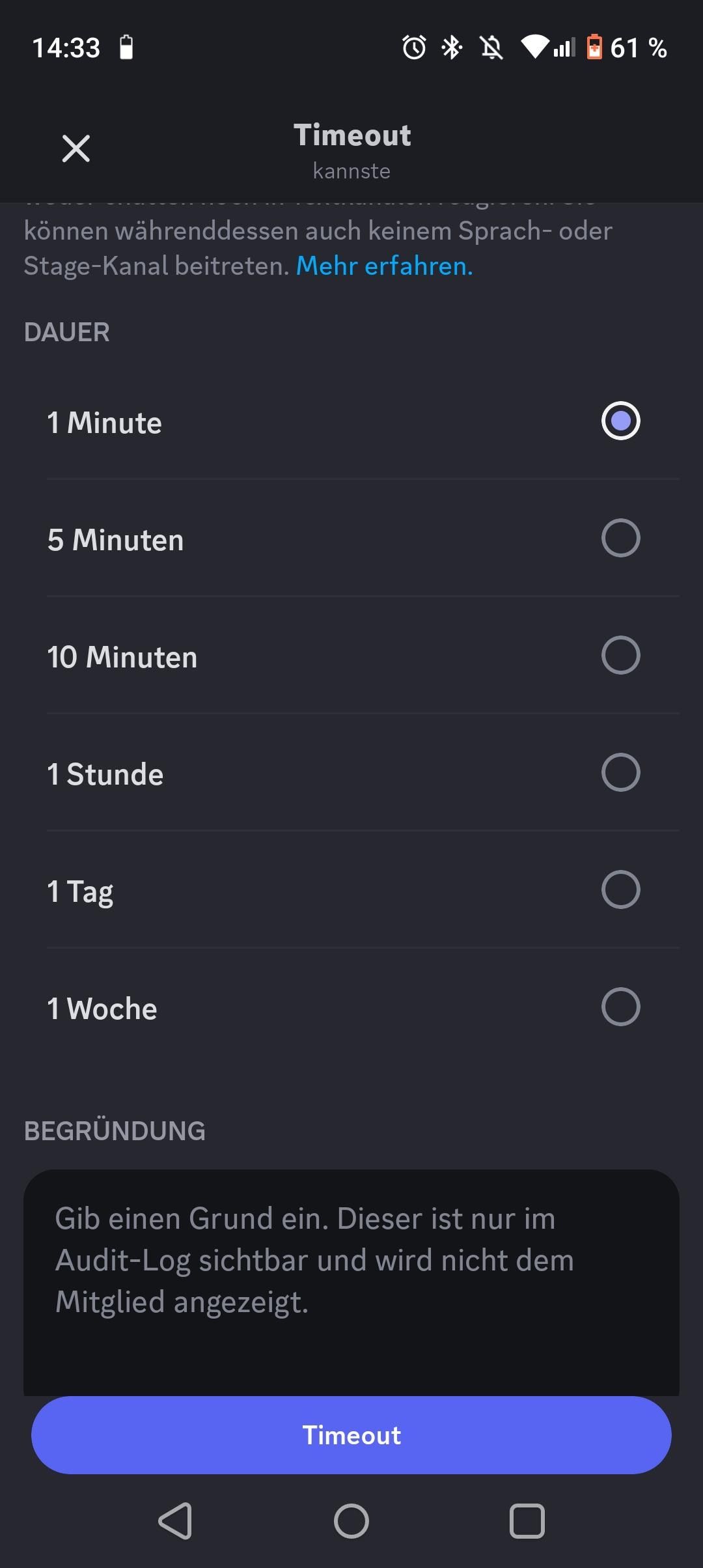 Ich hätte auch noch ein Vorschlag für die Moderation: Und zwar dass es verschiedene Arten von „timeout“ bzw „Bann“ gibt. ähnlich wie auf Discord. Also wenn jemand zb einmal beleidigt, bekommt er (zb) 10 minuten timeout. wenn er dann weiter macht, bekommt er dann ne Stunde usw. Und eventuell ein Warn system. also bei dem ersten längeren timeout gibt es ne „offizielle“ warnung (die auch für die mods sichtbar auf dem Profil des Users ist) und bei 3 Warns bekommt man dann mal lange ein timeout/bann