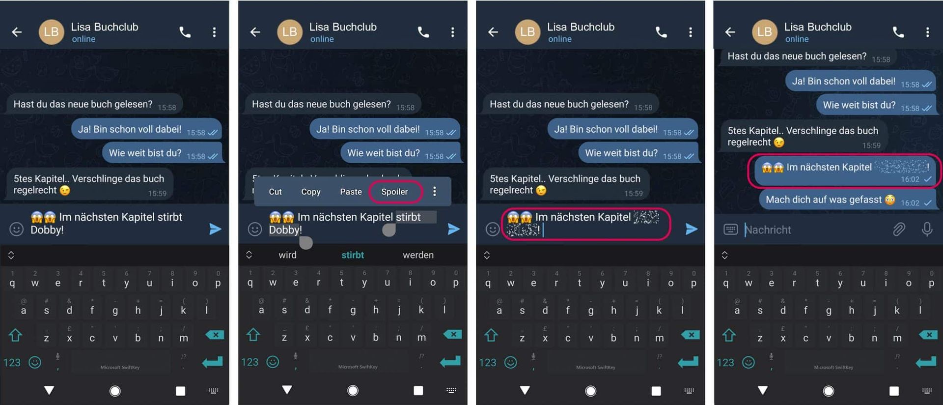 Vielleicht wäre ganz allgemein eine Spoiler-Funktion was? Man muss einfach klicken, um den Text hinter dem Spoiler zu sehen