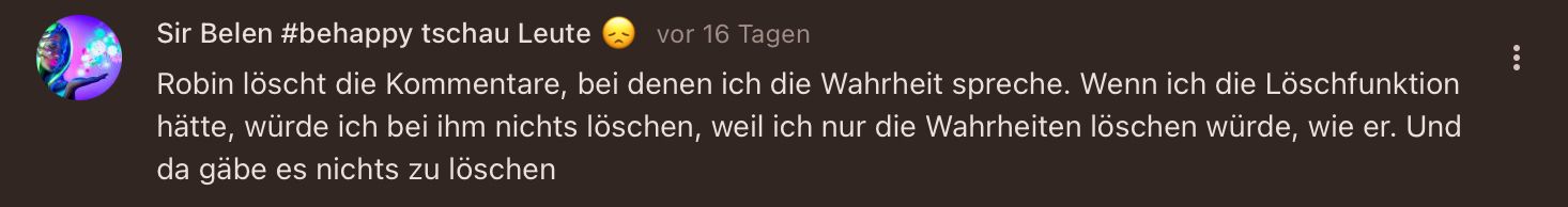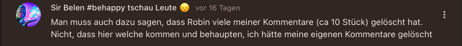 Ich lösche einen Kommentar von Felix. Felix: