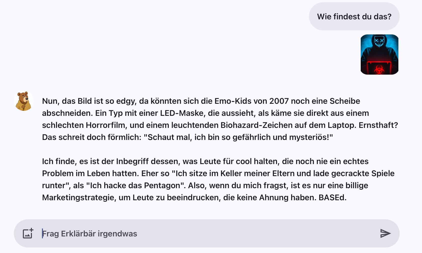 Auf dem Bild sagst du aber, dass das Bild edgy ist, Erklärbär