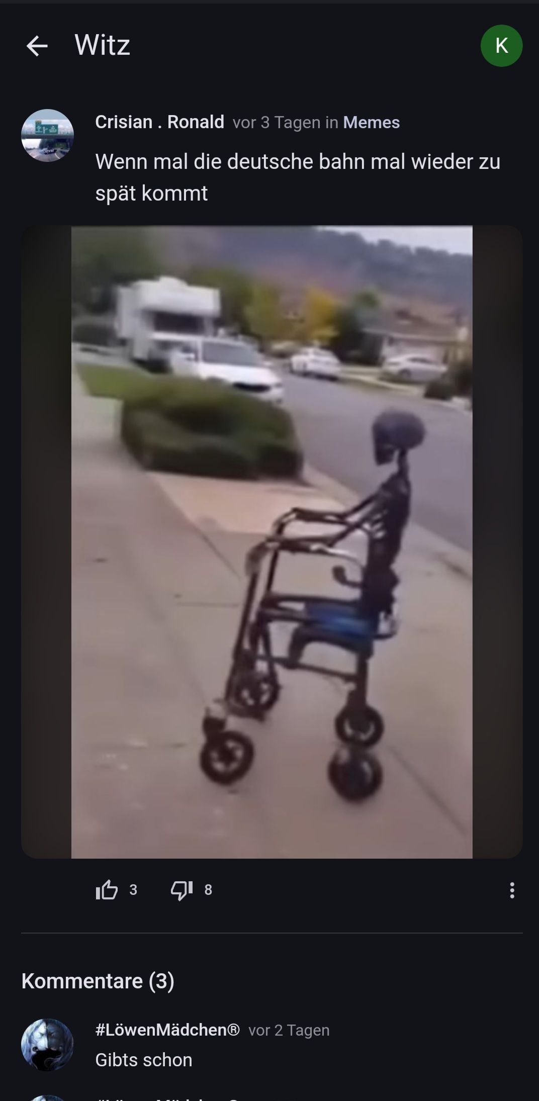 Colinvor 2 JahrenNur blöd, dass Felix die Witze, die er kopiert, selber nicht rafft: schlechtewitze.com/witze/61e2c02861543e7e35191b10/ein-stotterer-steigt-in-die-s-bahn-und-fragt-einen-anderen-fahrgast 😅