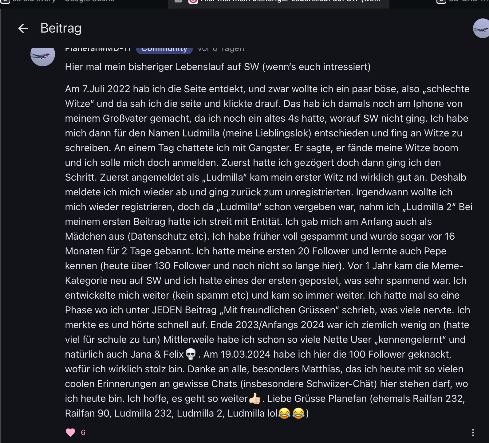 Zuerst Ludmilla, dann Railfan und jetzt Planefan, ein bei JEDEM Namen noch sicher paar Zahlen oder ein # hintendran