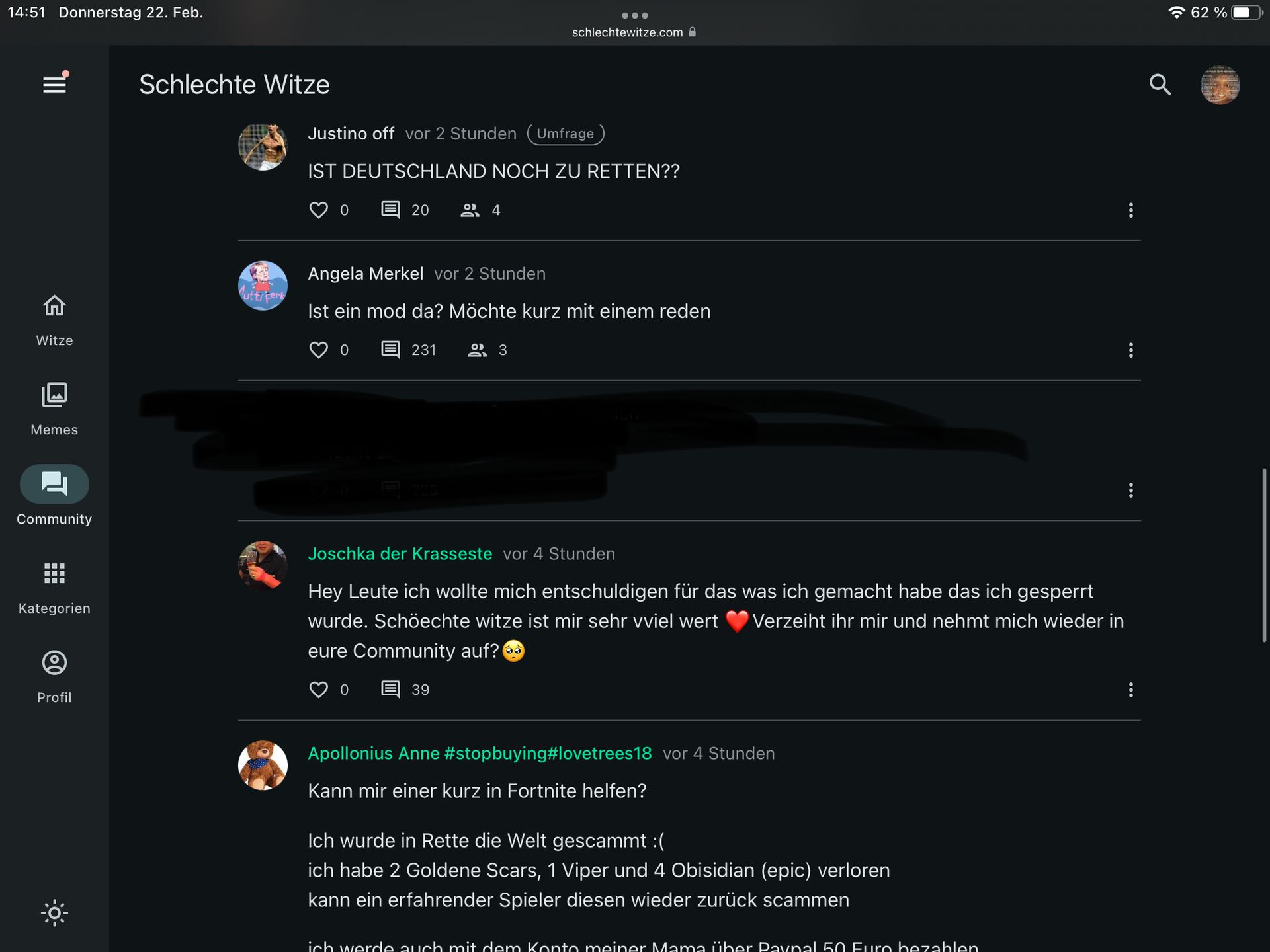 Cooler Haservor 2 JahrenColinIch weiß gar nicht, wer das nochmal war >.<schlechtewitze.com/community/p/659d62b8f4d876f76ce81376 Der hier ^^