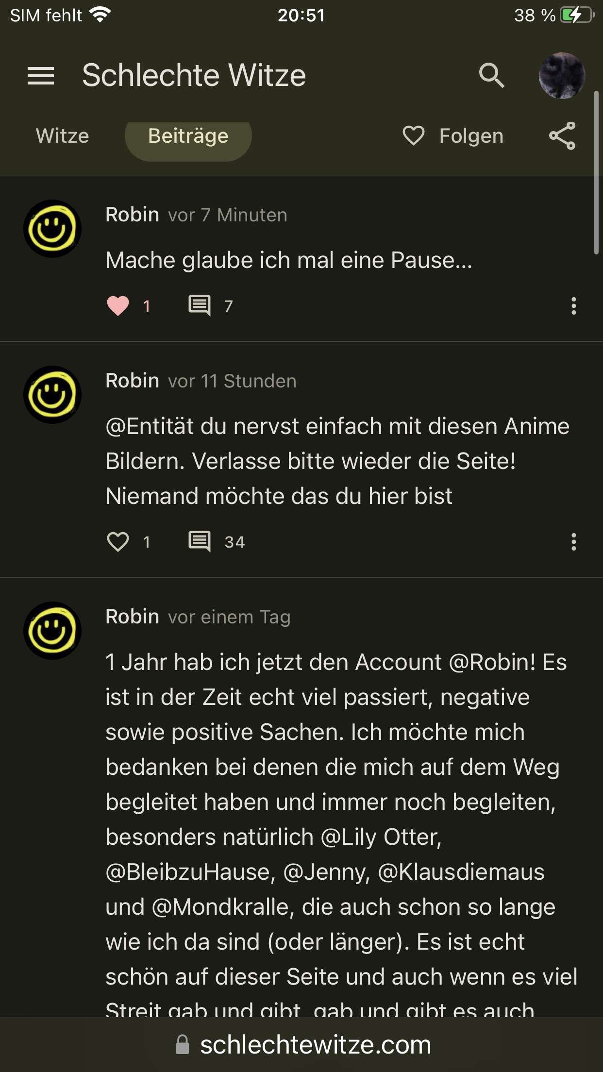 Jetzt muss sich niemand sirgen machen das ich die Website iwie ganz verlasse oder so aber wenn das so weitergeht wird das sicher vald der Fall sein.