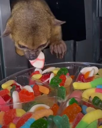 Laut der Tierpflegerin sind Gummibärchen (Zucker) ein Teil ihrer Ernährungsweise, da die Tiere in der Natur viel Honig fressen und es ihnen somit nichts ausmacht