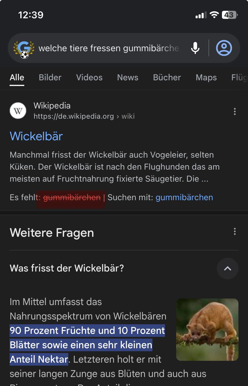 aber Wickelbären sind die einzigen Tiere, die Gummibärchen fressen