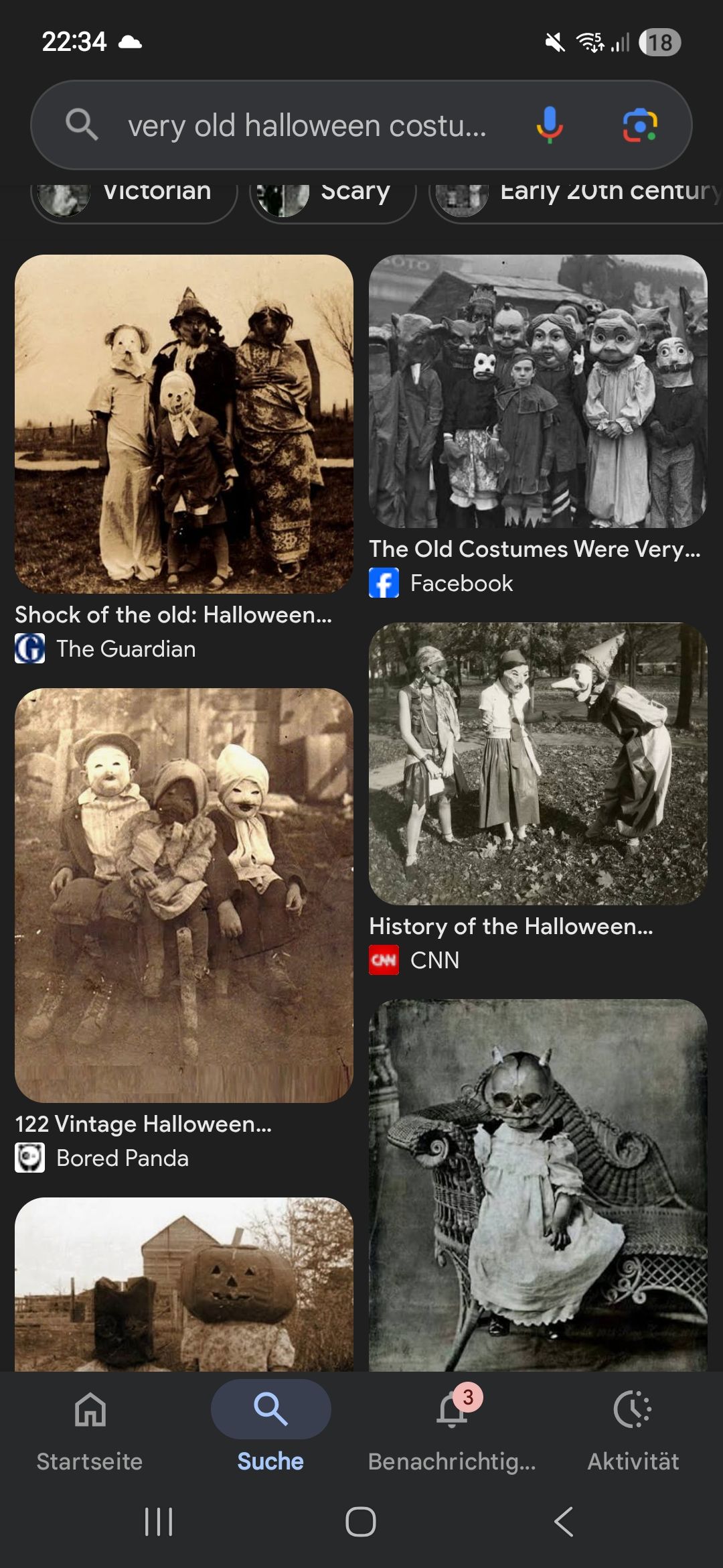 Dann gab es in der Grundschule einen Typen mit einer Gruselmaske und der ist hinter mir hergerannt, ich hatte riesige Angst, er sah aus als wäre er gerade aus dem Grab aufgestanden