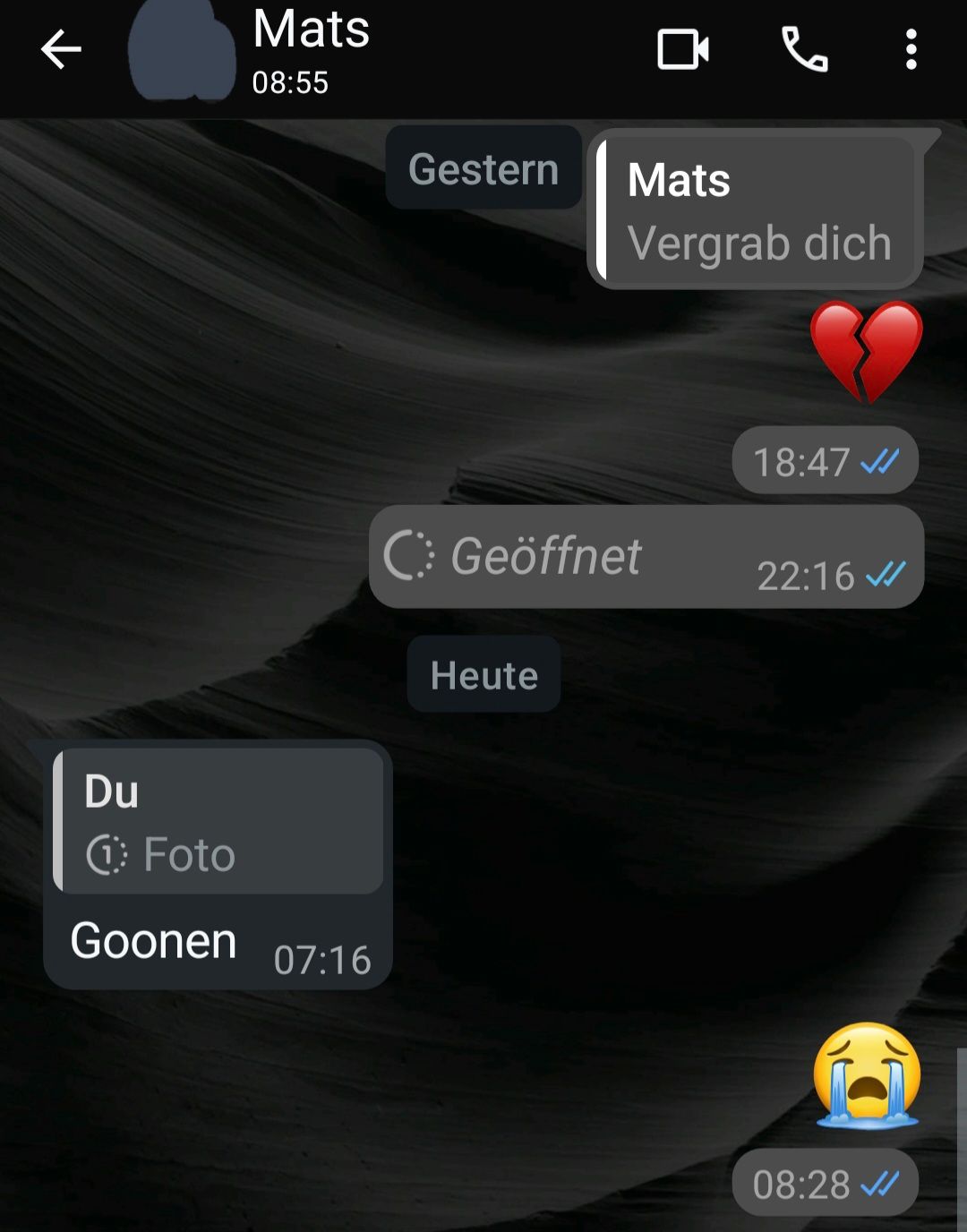 Was soll das erbärmliche "Hey :(", Mats? Willst du jetzt Mitleid, nachdem du hier den Chat mit deinem illegalen Durchschnittsalter-Geschwätz verpestet hast? Die Dummheit klebt dir am Arsch wie Kaugummi. Halt die Klappe und verschwinde. Es kommt NICHT drauf an.