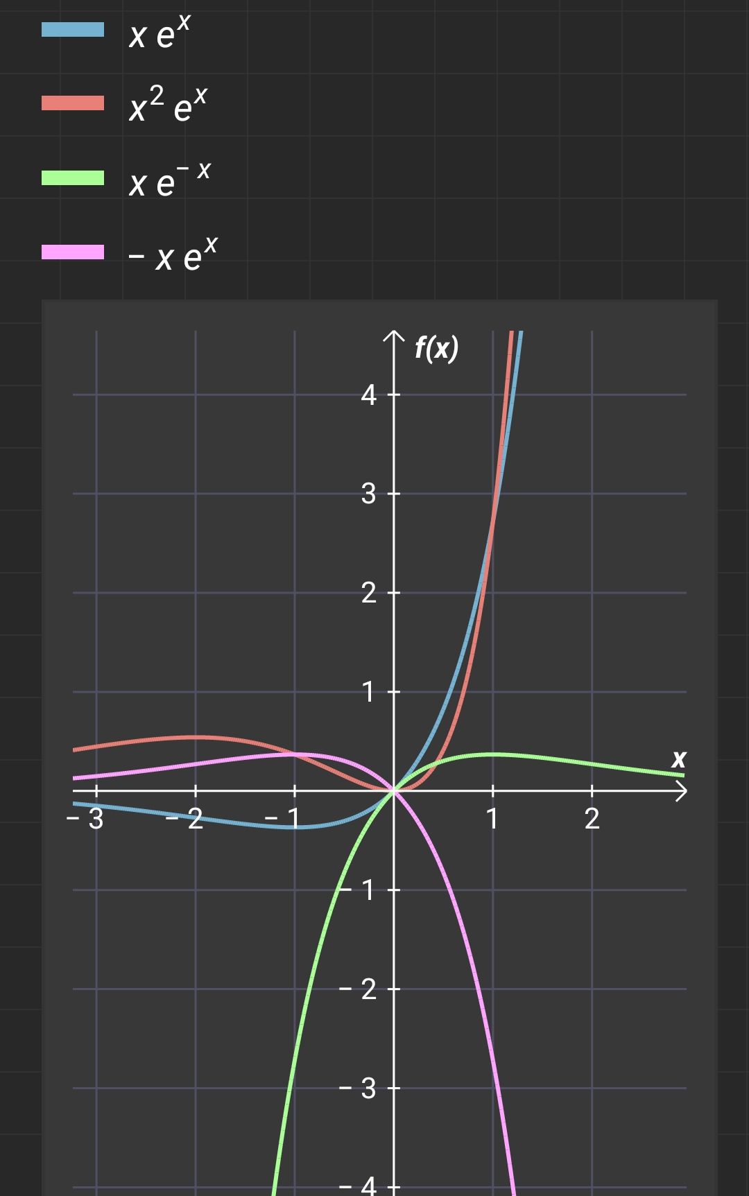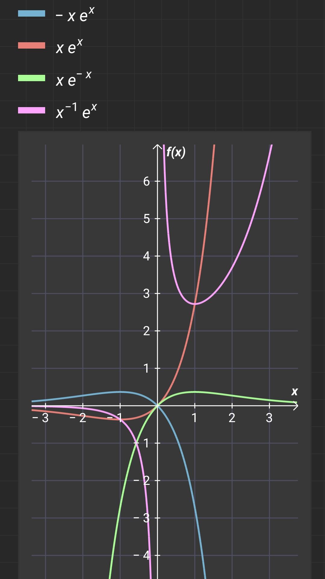 Ach so, wenn f(x) = axᵇ ⋅ eᶜˣ und c > 0, dann nähert es sich ja für x→-∞ an. Und dann ist b auch wichtig, weil wenn b gerade ist wird xᵇ ja wieder positiv, sonst isses negativ.