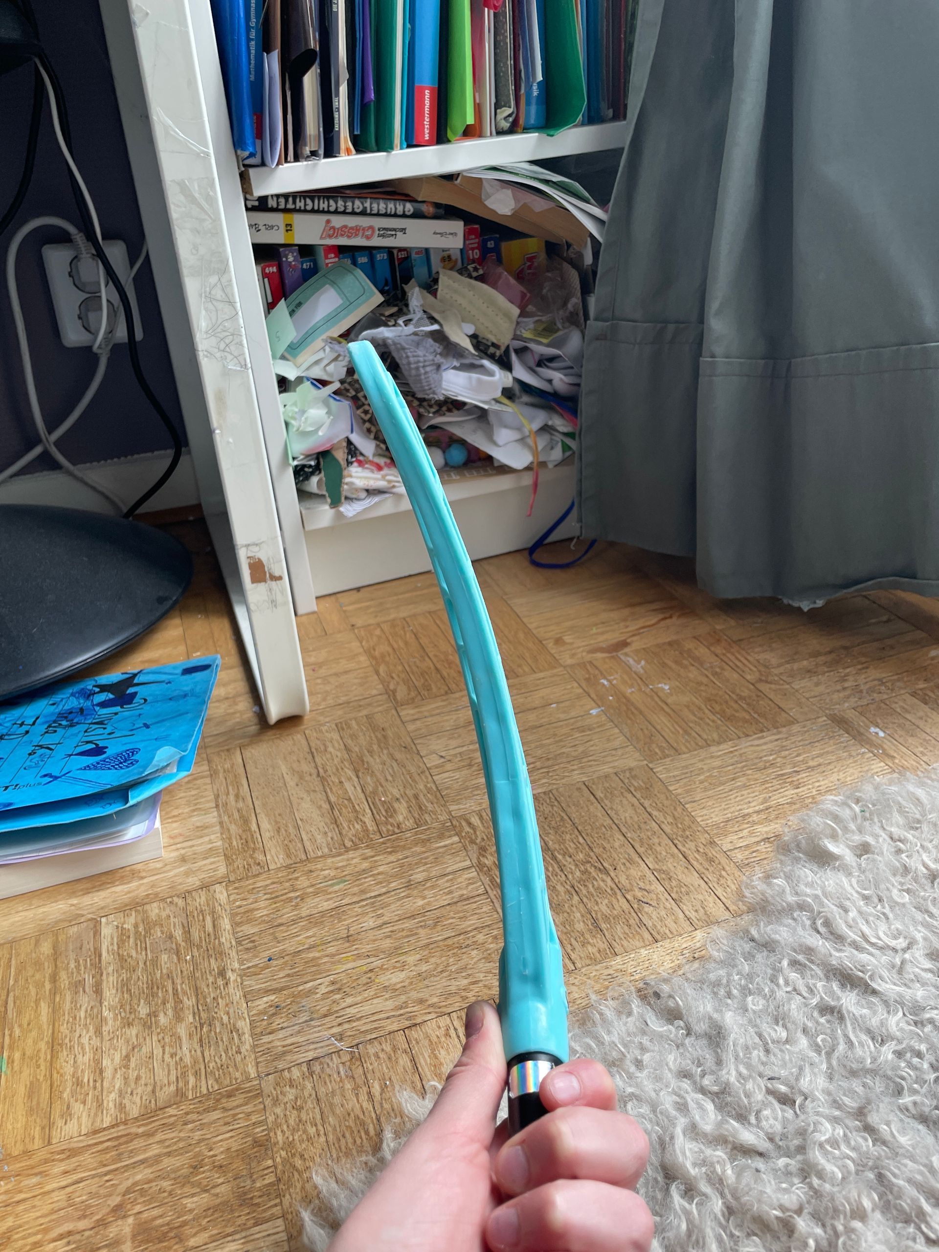 Und da sind zwar beide Seiten gleich, aber (angenommen man sei Rechtshänder) wir sollen den Ball von links so mit der Spitze der einen Seite nehmen statt einfach die Beschaffenheit des Schlägers zu nutzen