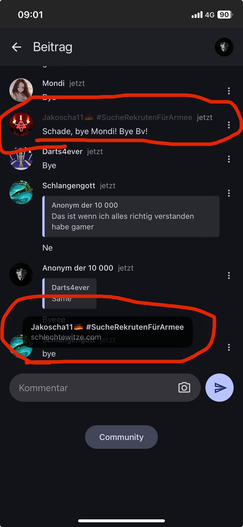 Oder in den Kommentaren eines Posts