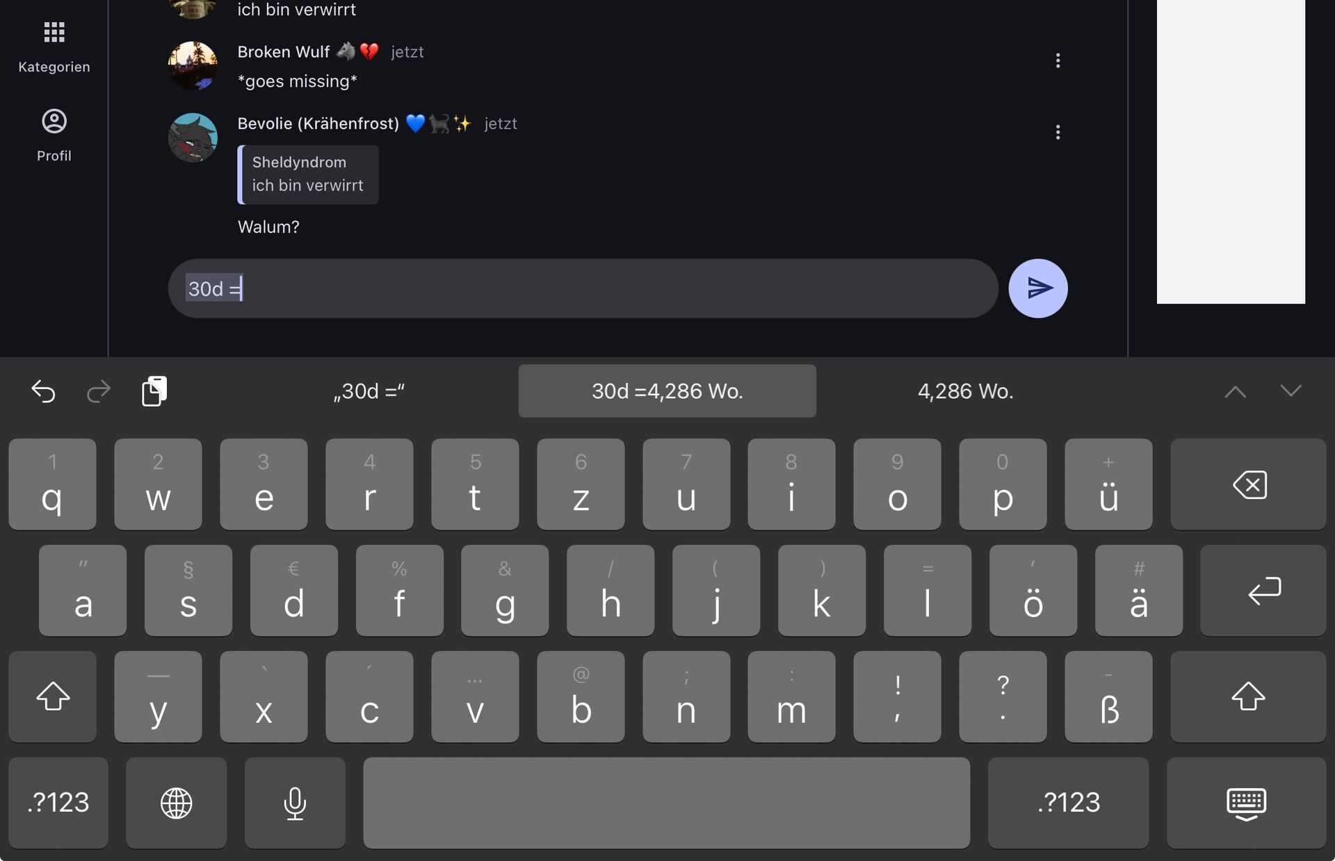 Sxhteibe gerade mit der Tastatir, Ber fuel zu schnell unr ohne zu orüfeb.