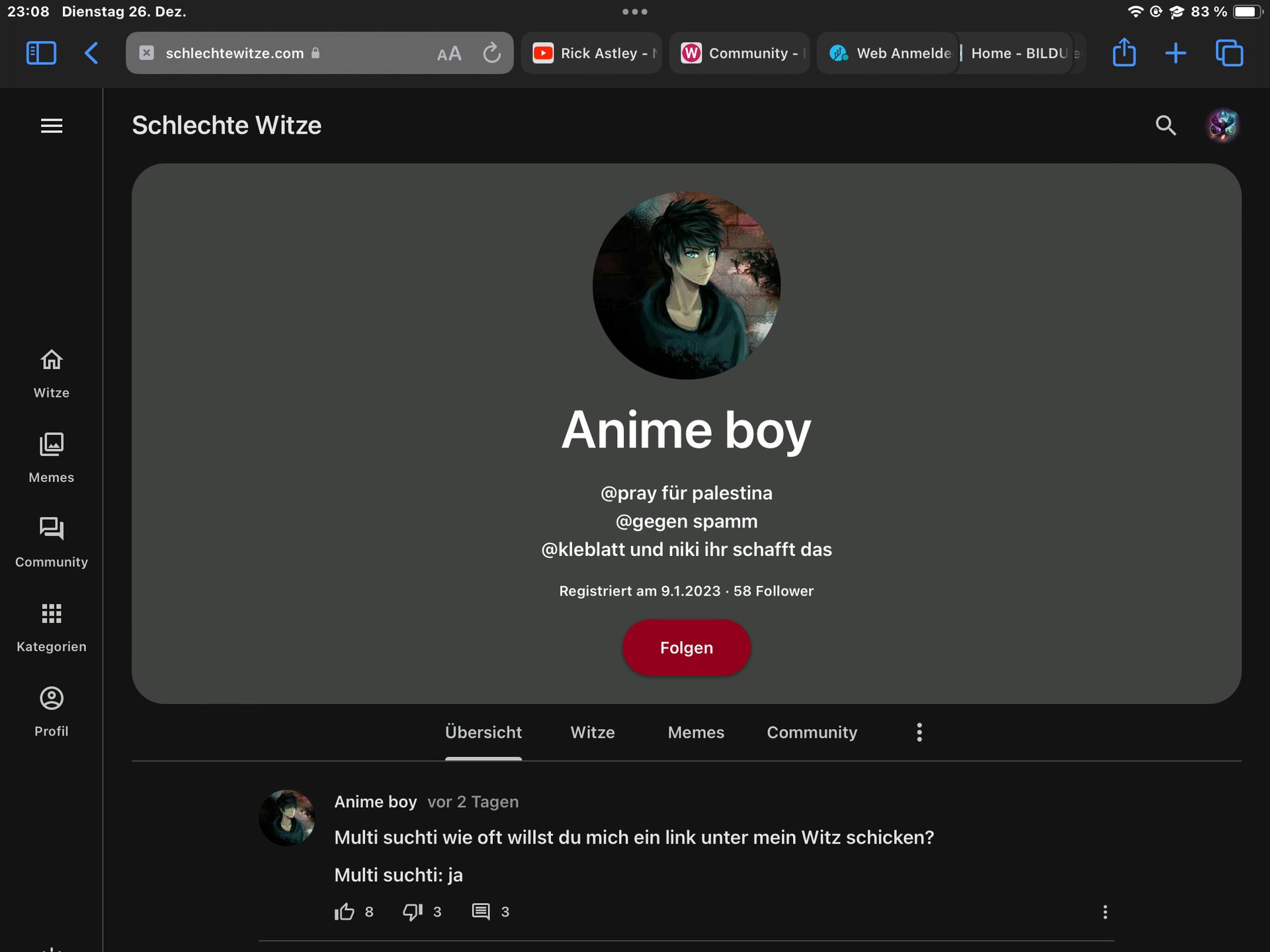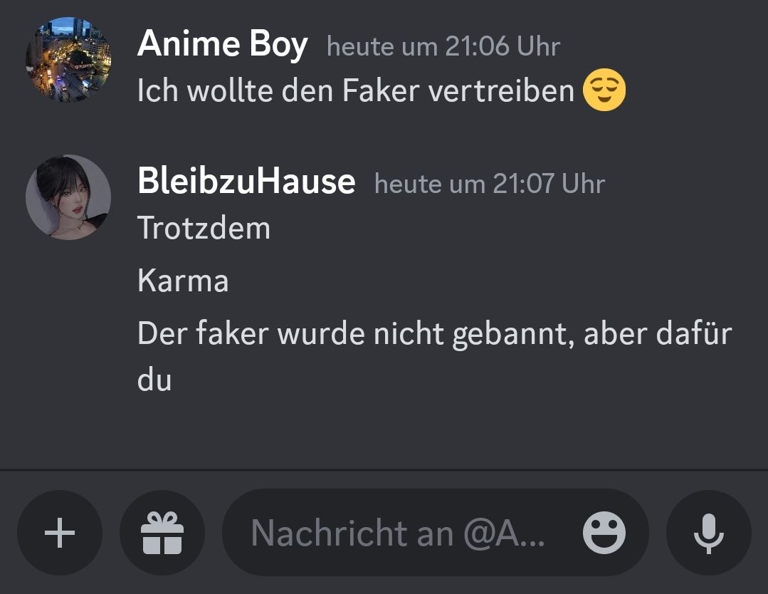 Jemand hat sich einen Account erstellt namens "Vater von Kannste" und Anime Boy wollte den verscheuchen als "Vater von Vater von Kannste"
