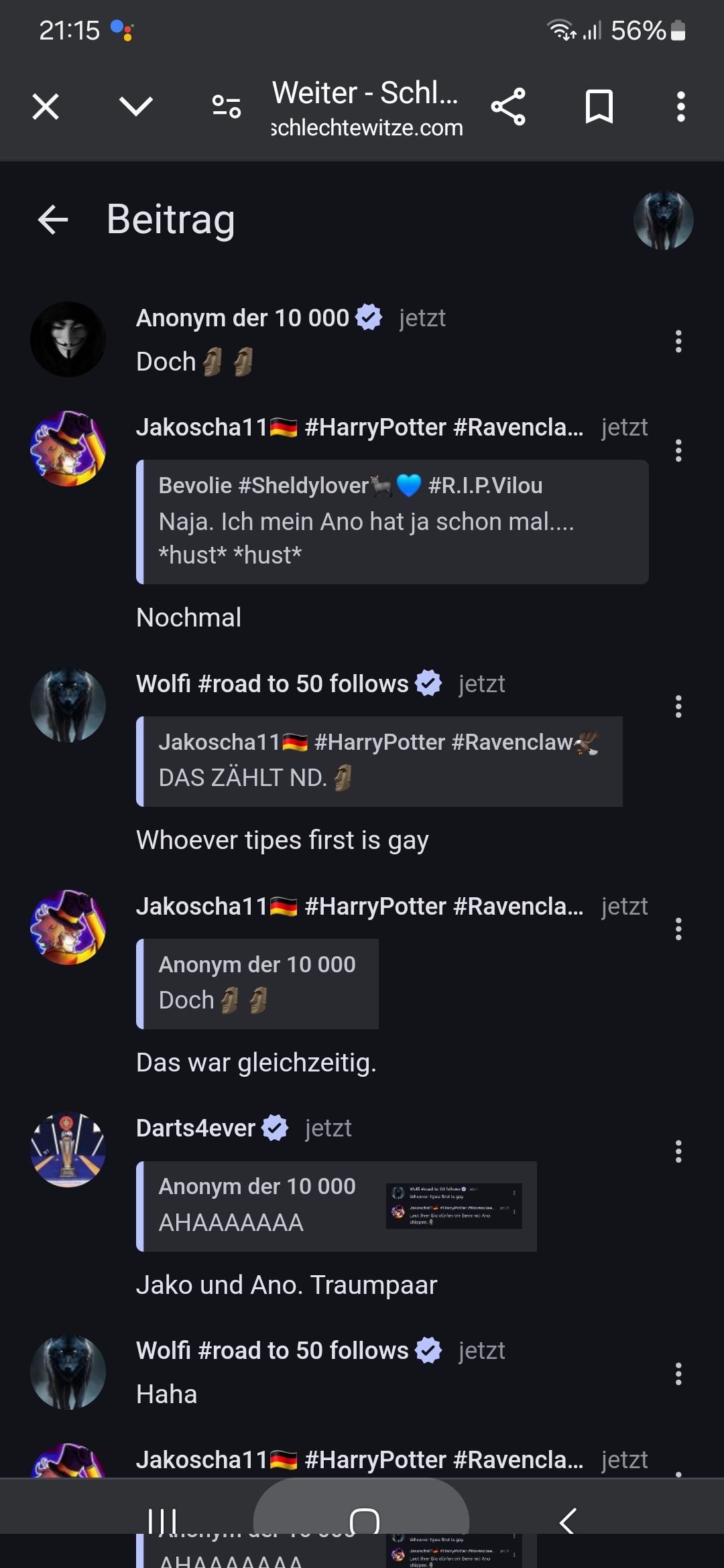Wie schnell das Niveau dieses Chats gesunken ist *hust*