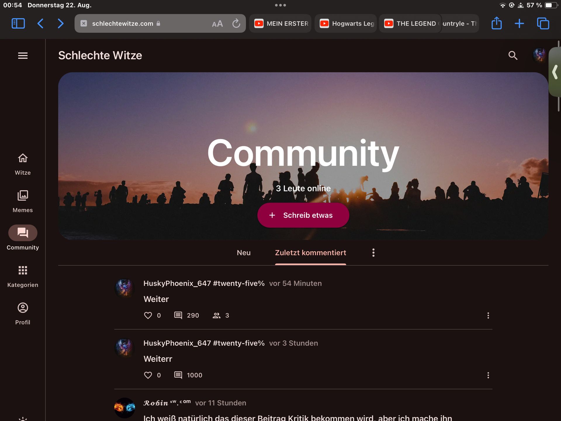 Zu dem Beitrag: Ich schreibe sehr viel ernstes, nur nd hier, weil das zu privat ist, um es öffentlich zu machen, aber dafür mit Usern von hier