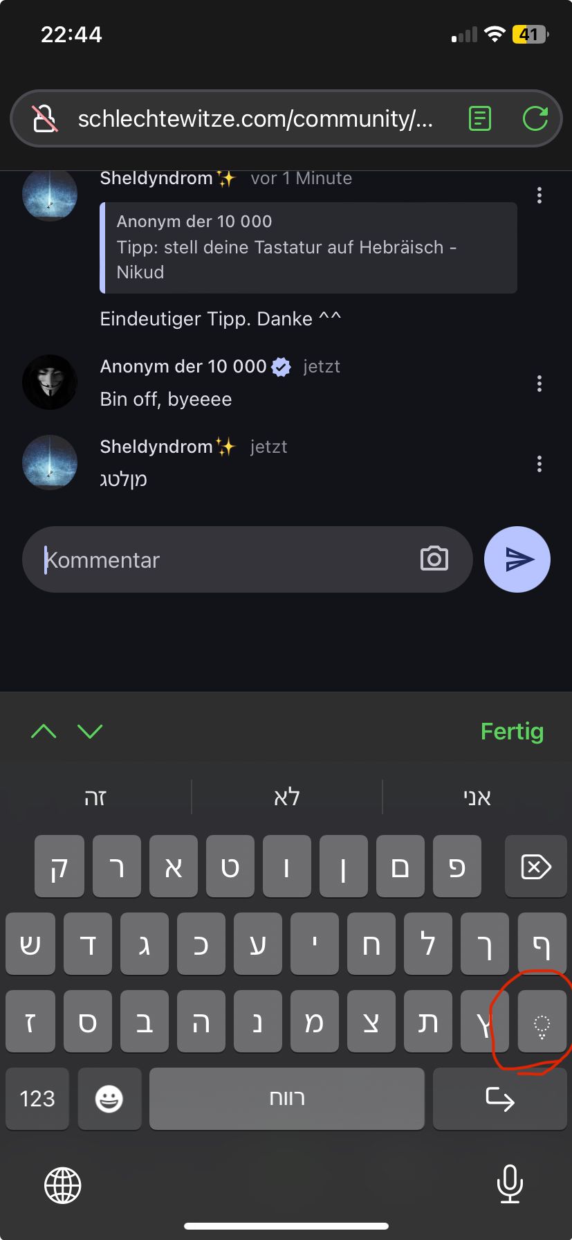 (Nochmal, um den Anwesenheitsstatus eine 2/3Stunde später zu erneuern:) Hii