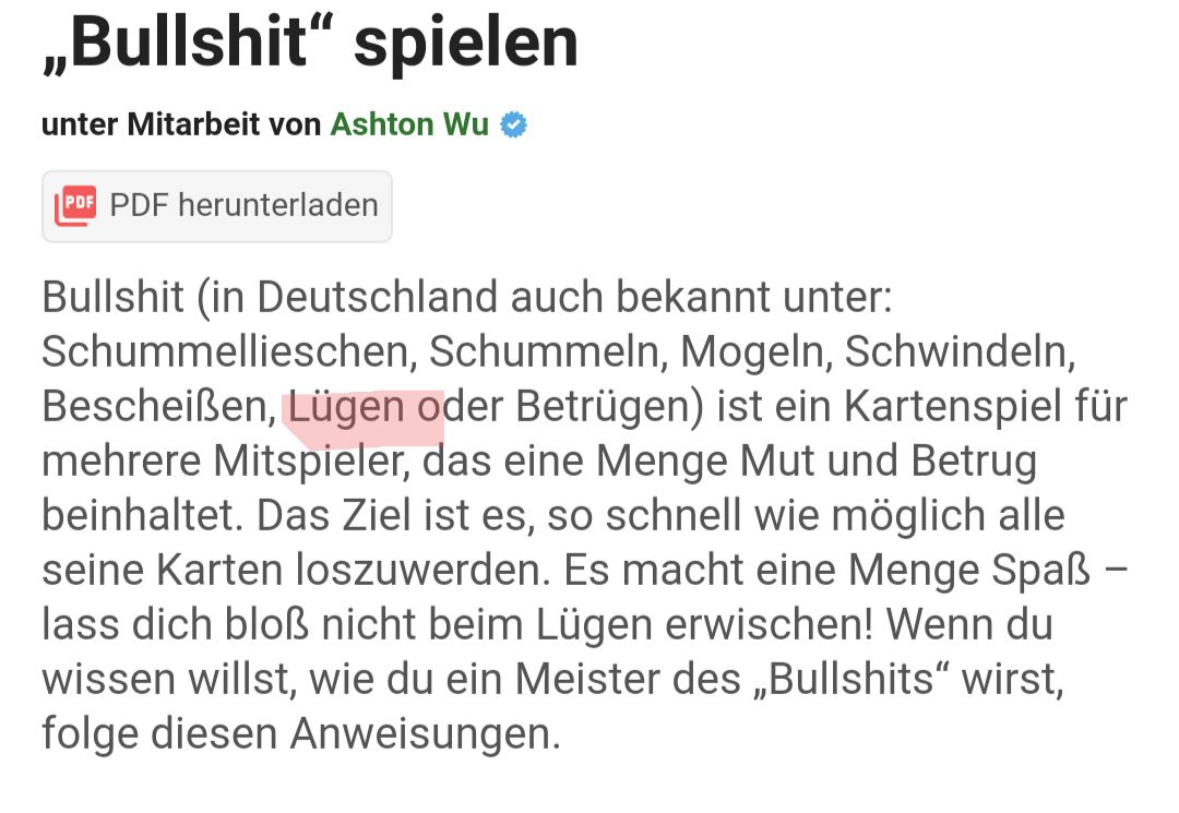 Parralel spielt man Bullshit, und immer wenn man eine Karte legt, darf man ziehen... Wird man beim Schummeln erwischt, muss man lediglich aussetzen. ._.