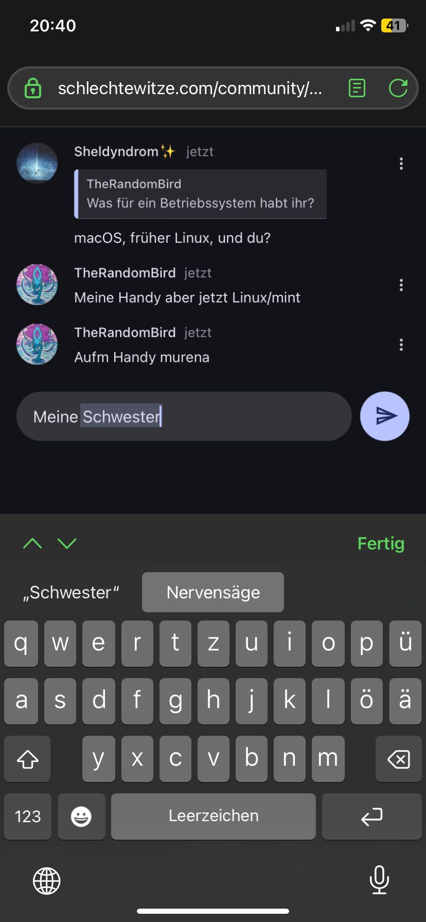 Bro wie oft gibt's den weiter Beitrag seit wie vielen Tagen geht dieser Chat durchgehend
