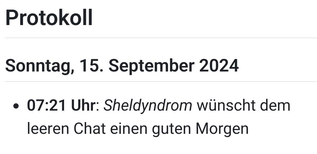 - **07:21 Uhr**: *Sheldyndrom* wünscht dem leeren Chat einen guten Morgen
