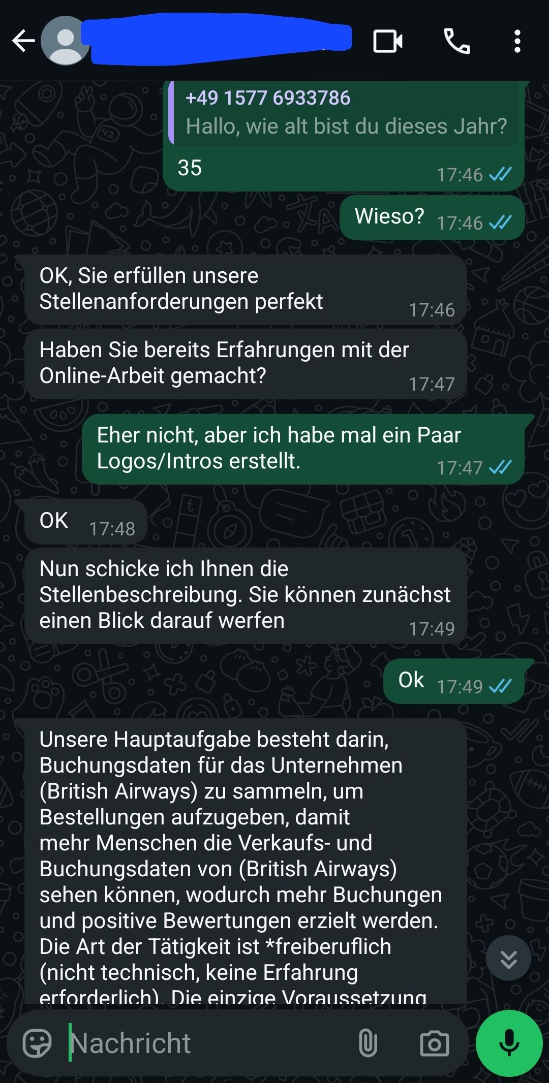 Job Scammer vor paar Tagen