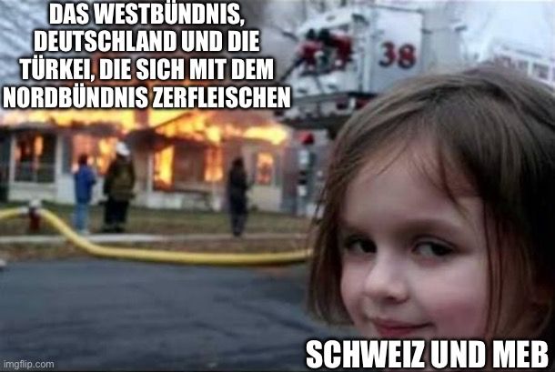 Für die würde das erst machen, wenn das Westbündnis (und das NB) extremst geschwächt ist, so weit kommt es so schnell nicht. Lenk weniger von euch ab, es heißt „Kriegsspiel“ und nicht „Friedensspiel - ich habe alle lieb und pflücke ein paar Blumen“