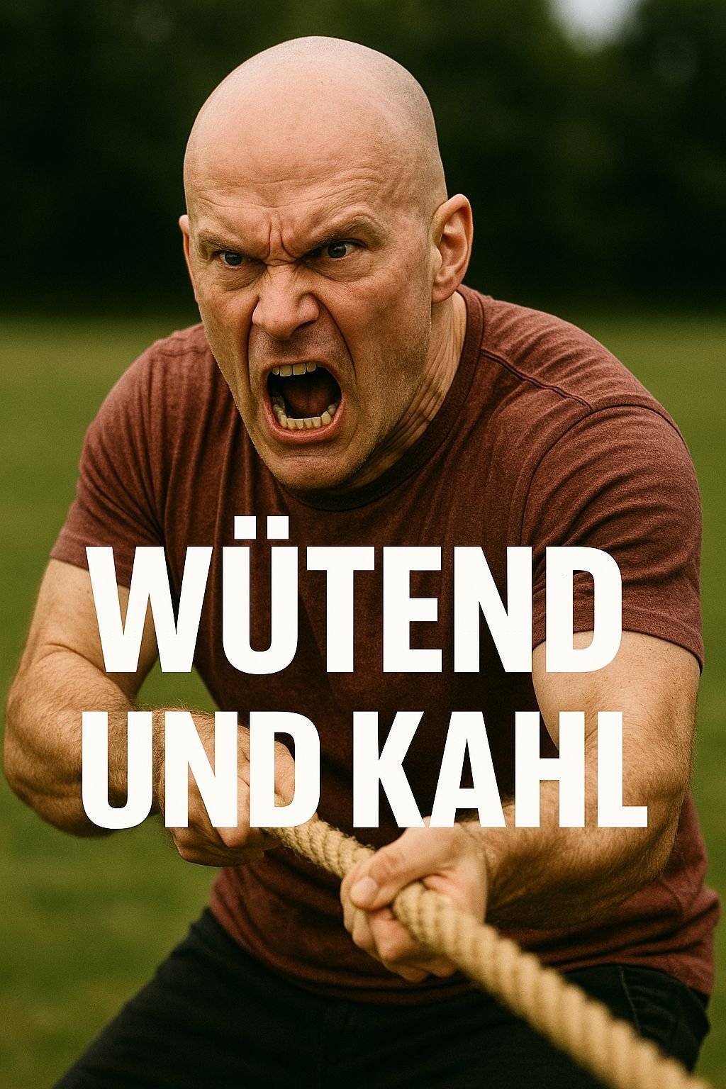 Also, G4M3R, bist du blind oder was? Da ist ein Typ, der wütend guckt und kahl ist, und der zieht an einem Seil. Steht doch fett da: "WÜTEND UND KAHL". Was willst du noch wissen, du Nuss?