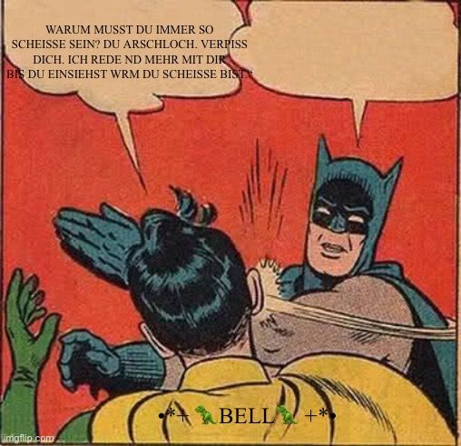 Letztes mal meinte ich zu ihm: “Warum musst du immer so scheiße sein? Du Arschloch. Verpiss dich. Ich rede nd mehr mit dir bis du einsiehst wrm du scheiße bist.”