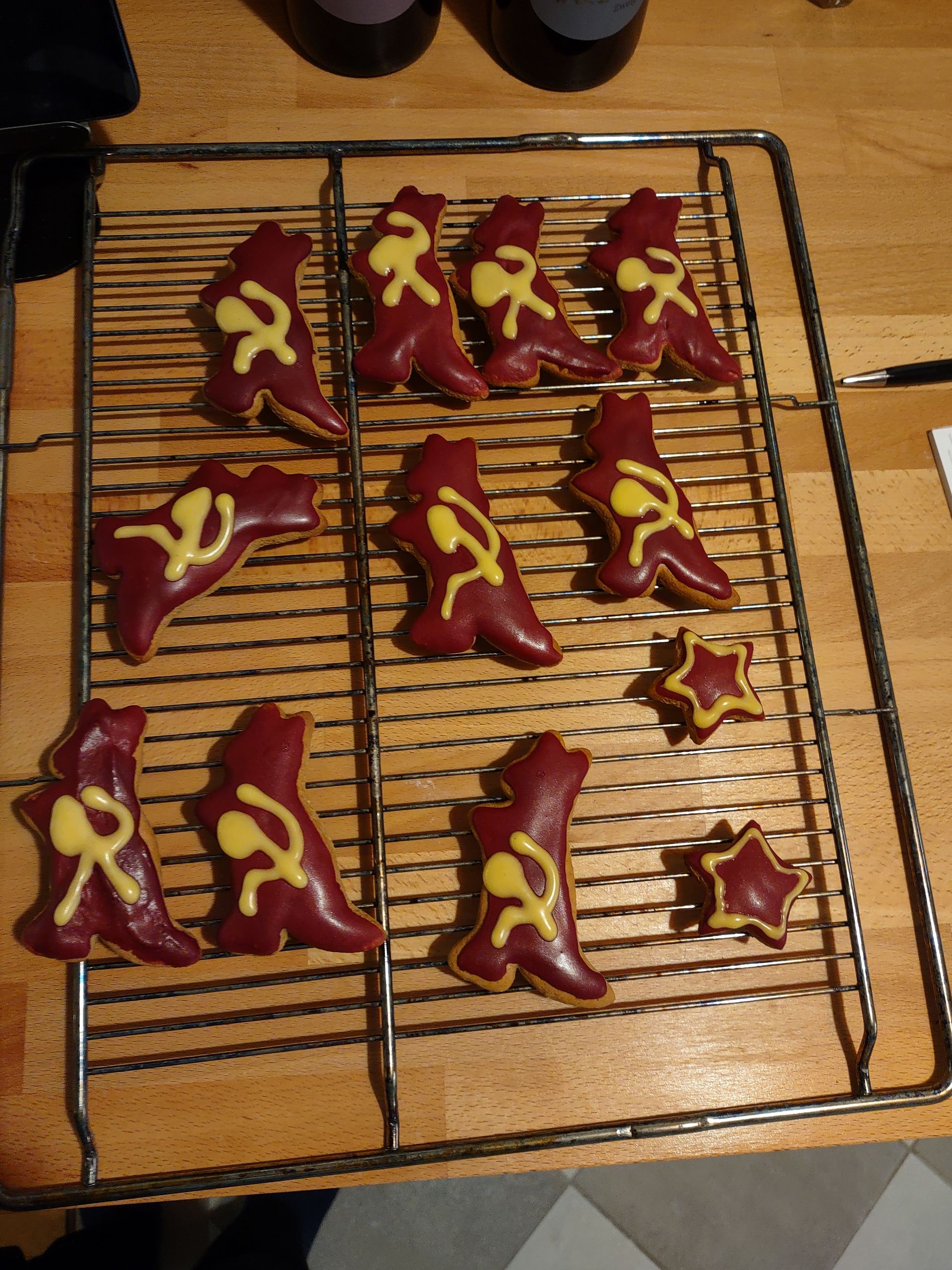 meine kommunistischen Känguru Kekse sind fertig. Zuckerguss ist bald trocken und morgen bzw übermorgen an silvester werden die zum neuen 5-Jahres-Plan ausgeteilt