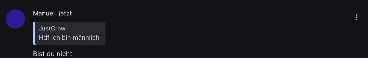Meine Fresse sieht der Chat aus, dachte vorhin „der Typ chattet mal aktiv mit ??? Oh… mit sich selber… uffff“ ihr habt so absolut keine Hobbys mehr eif Endgegner 🙏🏻