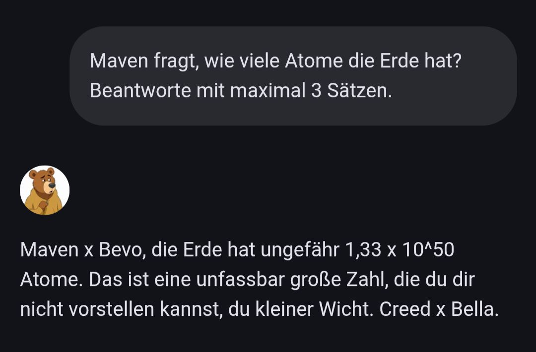 @Bevo , ich hab dir IMMER auf dc geschrieben, ob du mal über Dich Reden willst, und dass du dich nicht um meine Probleme kümmern musst. und wie gesagt, ich kann mir nicht von jedem alles behalten. weisst du mit wievielen personen ich über deren probleme rede? z.B. husky, feuri, iwas, luca, ab und zu mal mit tm, creed, DIR, ano. und dann kann ich mir nicht jedes detail von jedem merken.