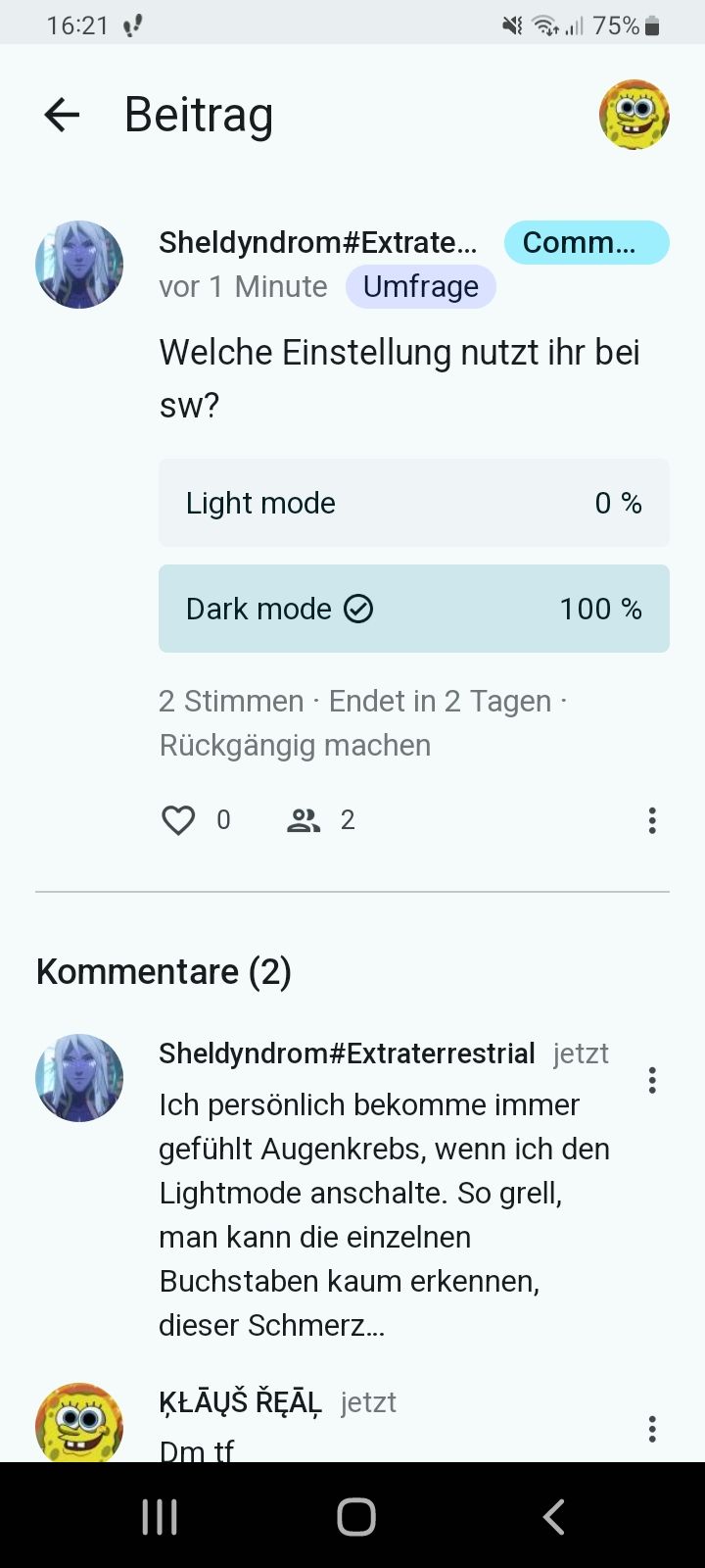 Ich persönlich bekomme immer gefühlt Augenkrebs, wenn ich den Lightmode anschalte. So grell, man kann die einzelnen Buchstaben kaum erkennen, dieser Schmerz…