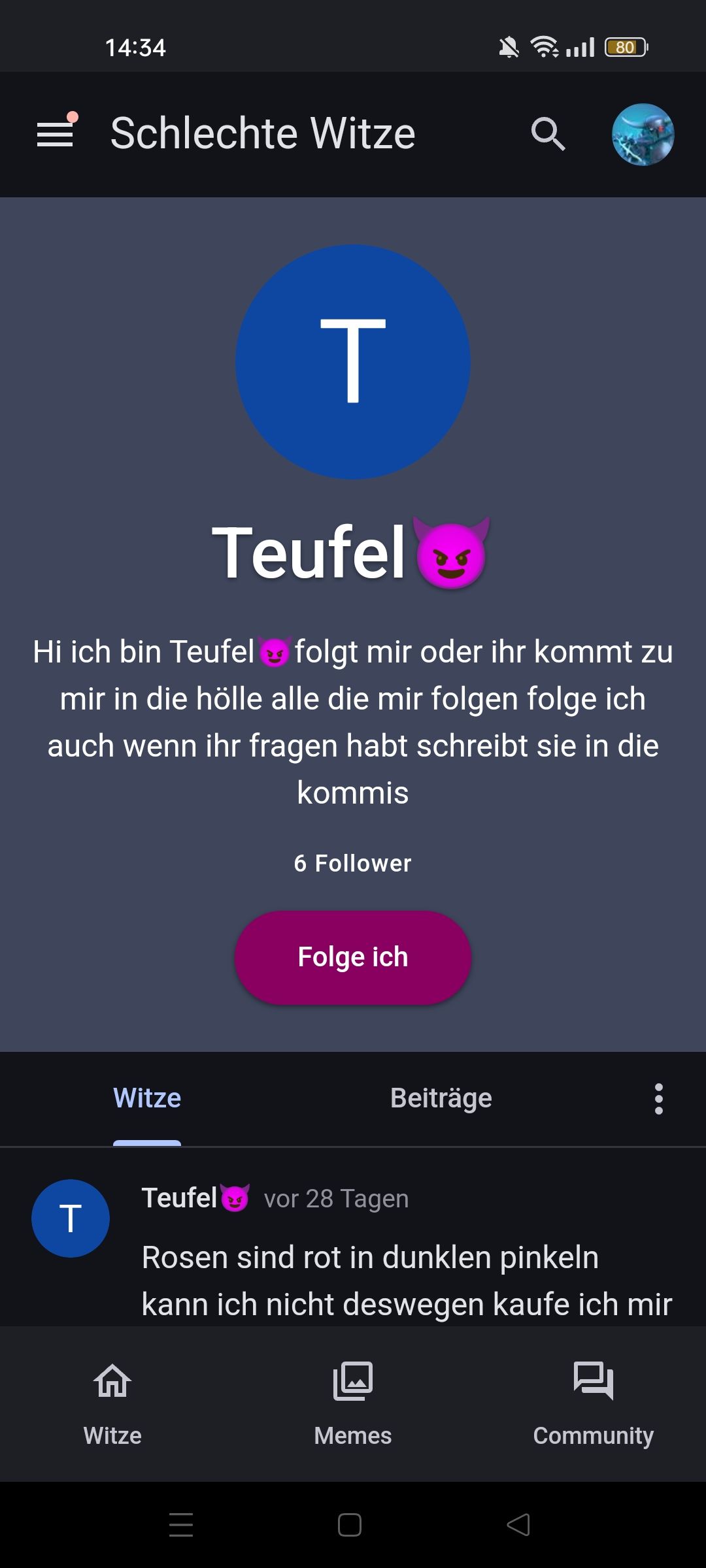 Du hast mich erfolgt (5 follower) dann hast du mir wieder gefolgt (6 follower)