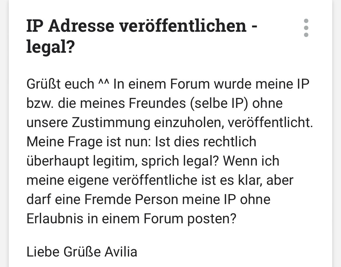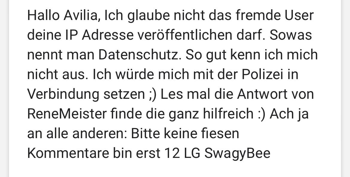 Matthias du darfst die Ip-Adresse nicht veröffentlichen, wegen Datenschutz das ist auch glaube Straffbar!
