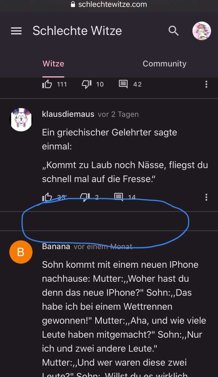 Ich habe eine Werbung auf 7 Seite Witzen