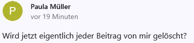 Beantworte lieber mal die ursprüngliche Frage, Paula. Du wolltest doch wissen, warum Beiträge von dir gelöscht wurden. Hast du es mittlerweile herausgefunden?