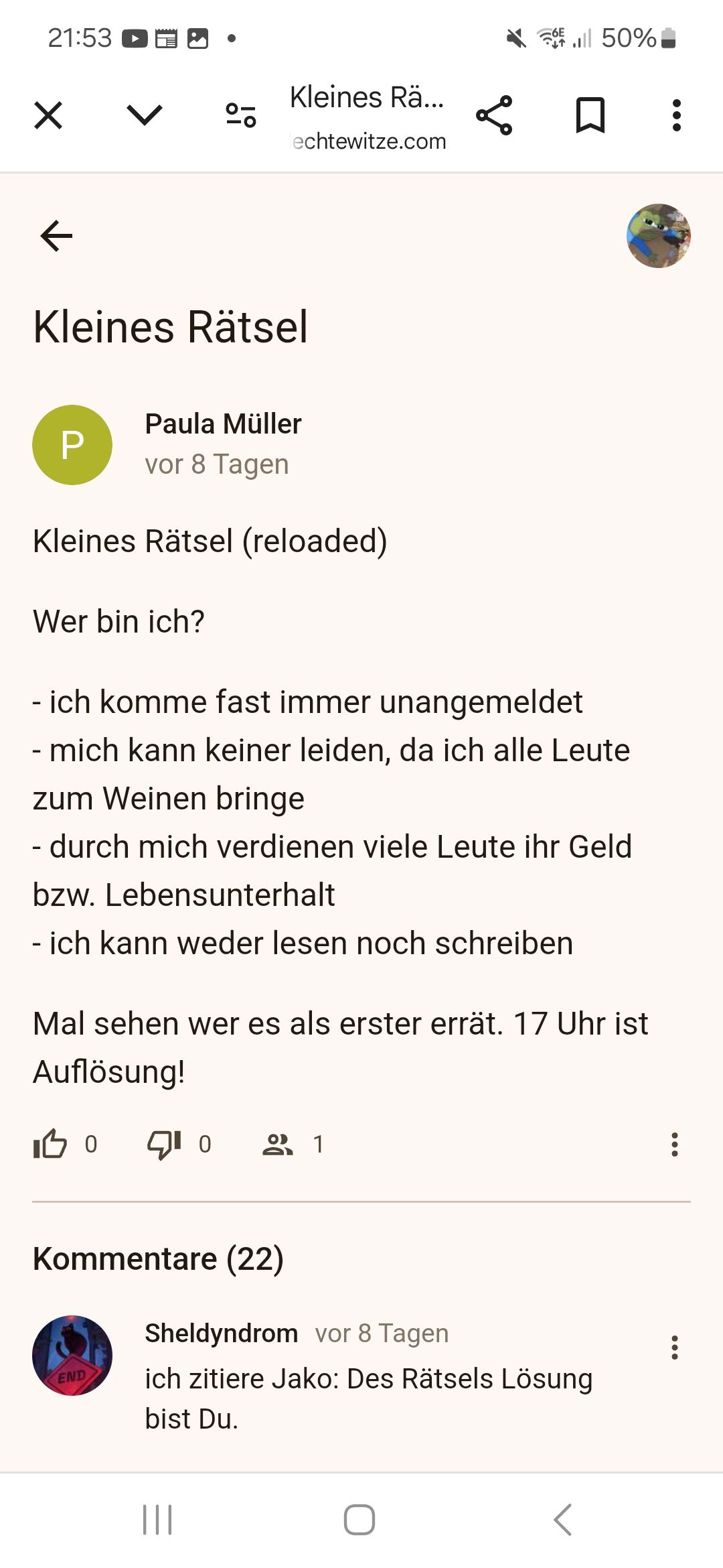 Wer hat heute wieder einen Witz von mir gelöscht?