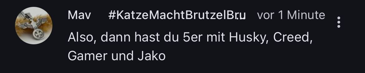 Anonymvor 4 MonatenKatze®️@Mav is der Dieb, er will immer mein Herz stehlenIch will dir lieber die Luft zum atmen nehmen, und sie mit Zyclon B ersetzen, also seh mich als Santa von auschwitz