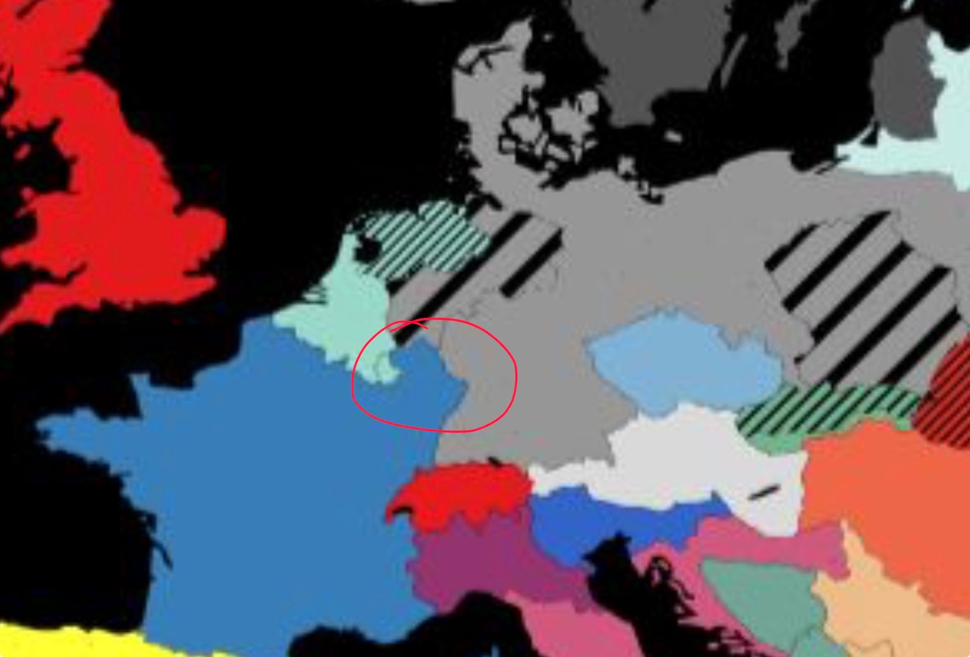 @Jako, im Siegesfall würde Spanien der gelbe Bereich gehören, Iranistan der rote Bereich und mir (Benelux) der Rest.