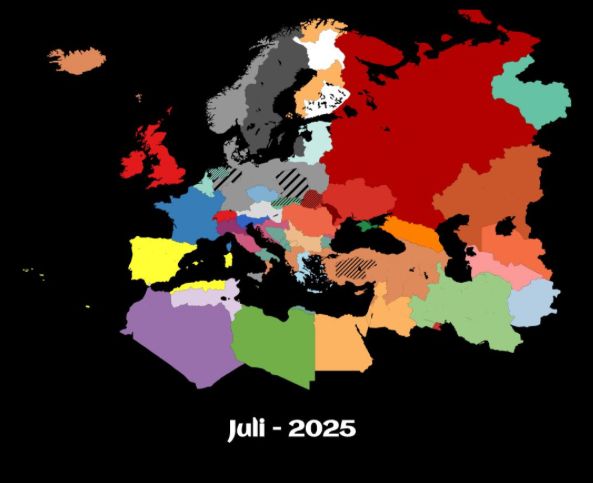 22. 6. 2025 Im Benelux wird die Bürokratie abgebaut und KI-Untersützt weitergeführt. Bürger können absofort ihre Anliegen an die Regierung schreiben. Anliegen kommen an wie: -Mehr Panzer! -Lass Frankreich auch angreifen -Mehr Parks oder: -Lass Belgien frei! Deutschland baut in Polen Gefängnisse zu Arbeitslagern um. Finnland baut in ganz Finnland, auch dem ägyptischen Teil, Atombunker. In der Türkei wird jedem Bürger kostenlos ein Handy zu Verfügung gestellt. Auch wenn die Staatskasse leidet, so wird das Volk zufrieden und propagiert. Griechenland baut die Grenzwalle weiter und führt die Wehrpflicht ein. In Marokko entstehen in der algerischen Wüste Glasfabriken. Durch Exporte wird Marokko zunehmend reicher.