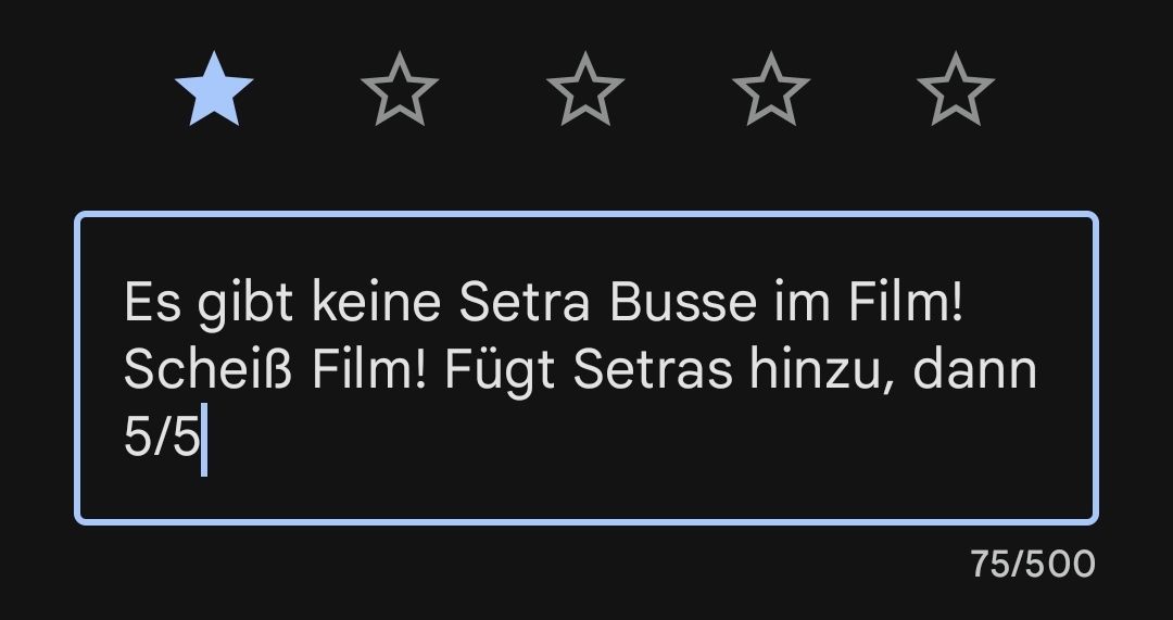 Da muss ich dir leider widersprechen, zeilenweise "Setra" bzw. "Setra Setra Setra [...] Setra" kann man bei bestem Willen als nichts anderes bezeichnen.