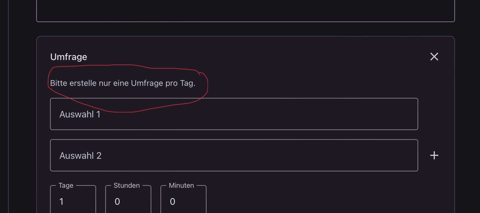 Сommunityvor 2 JahrenNicht falsch verstehen: wenn es an einem Tag 2 Umfragen wären, würde ich den Fehler eingestehen.