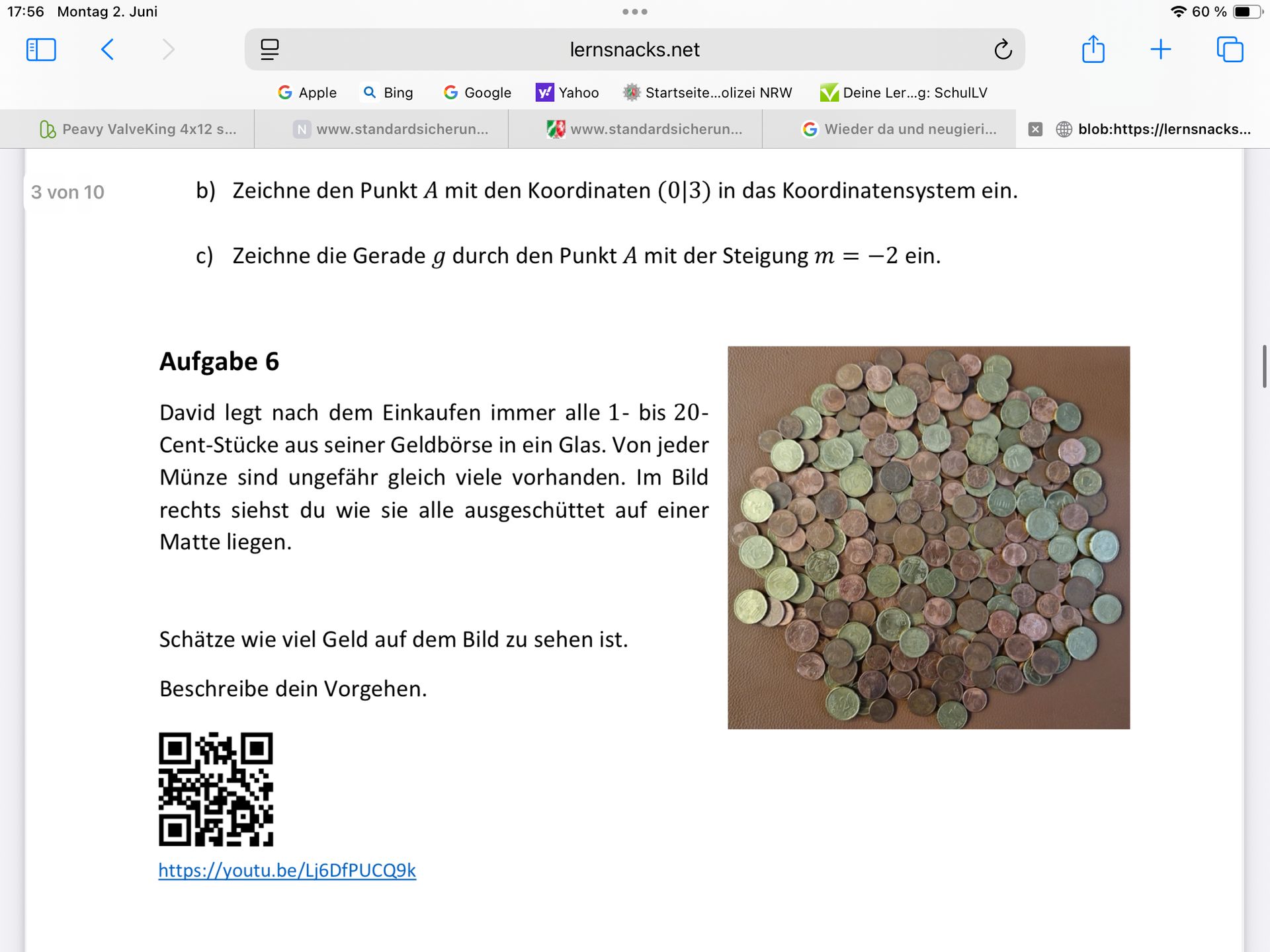 Es gab in so ner Beispielprüfung so ne Schätzaufgabe und nen Lösungsvideo auf yt zu mathe. Man sollte so schätzen wie viel Geld da liegt, DER TYP IN DEM VIDEO HAT 2 SEITEN DAZU GESCHRIEBEN