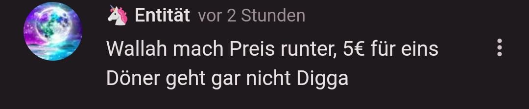 Enti, bei mir um die Ecke kosten ein normaler Döner 6.50 oder 7.00 € oder so