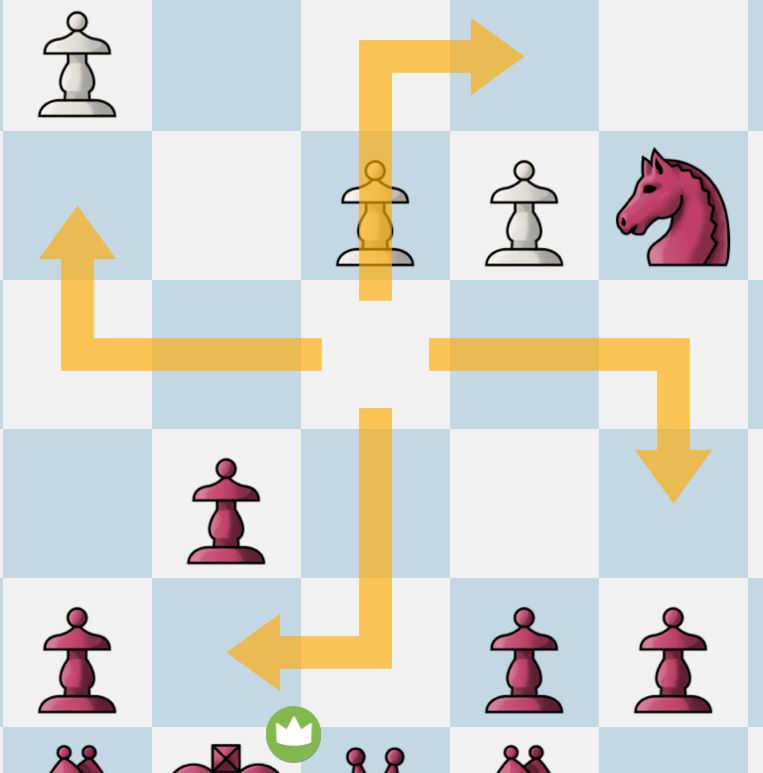 Der Spitze Dude zwischen Läufer und Pferd bewegt sich wie ein Bauer, läuft und schlägt aber diagonal und geradeaus.