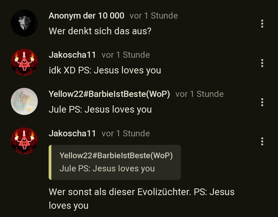 Jz nur noch einer ahahha PS: Jesus loves you