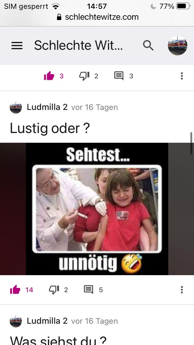 Anonymvor 3 JahrenMeine beiden Witze für Witz des Monats in den Kommentaren. Mit freundlichen Grüssen Ludmilla