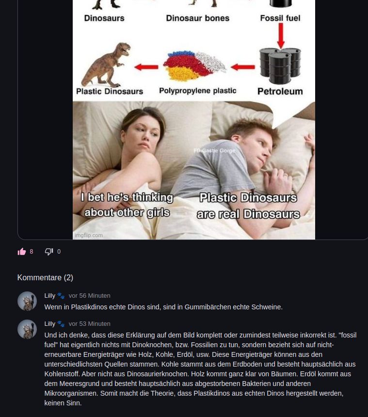 Ich habe recherchiert und es stimmt tatsächlich, dass fossile Brennstoffe NICHT aus Dinosaurierknochen stammen